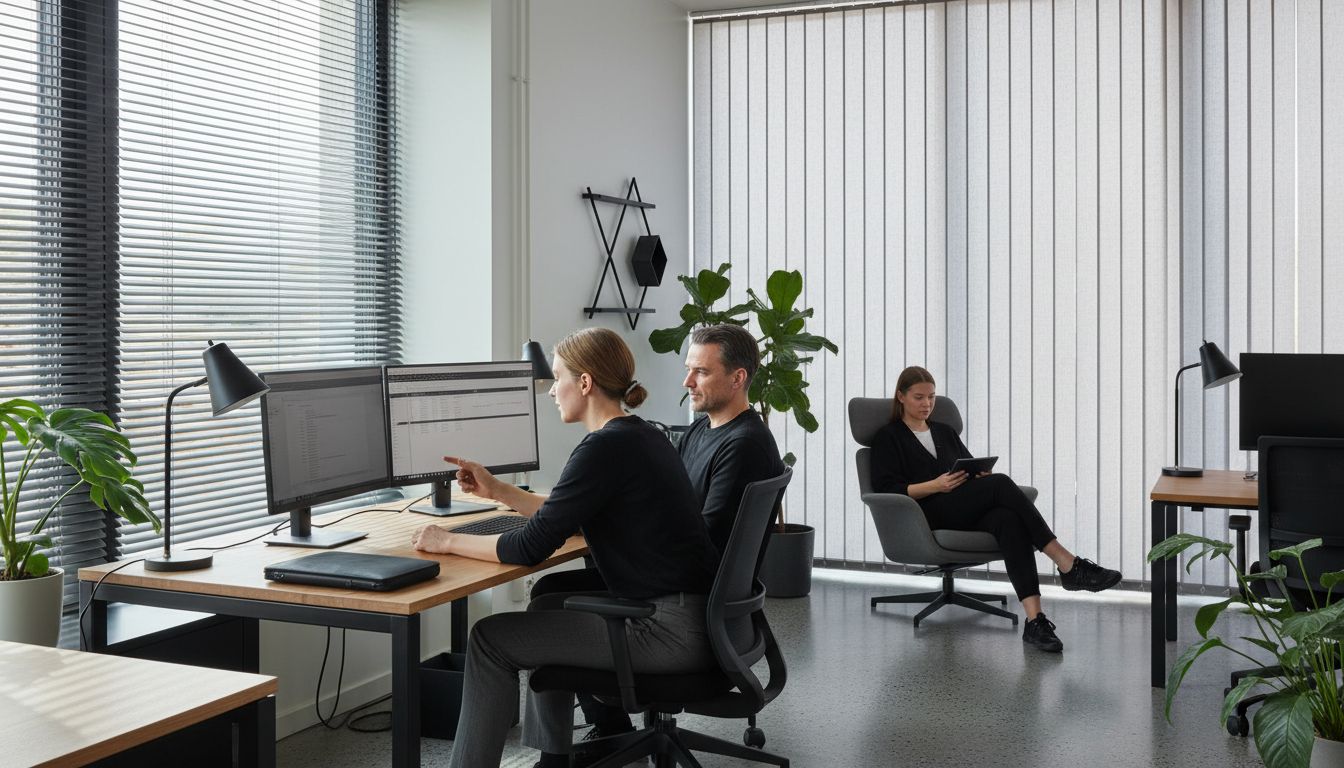 Työtiloissa kaihtimien toiminnallisuus korostuu täysin eri tavalla kuin esimerkiksi makuuhuoneessa. Toimistossa sälekaihtimet ikkunoihin mahdollistavat tarkan valon säädön, vähentävät häikäisyä näyttöpäätteillä ja luovat ammattimaisen työympäristön. Säädettävyys on avainasemassa, sillä se mahdollistaa optimaalisen valaistuksen eri vuorokauden aikoina ja muuttuvissa valaistusolosuhteissa.